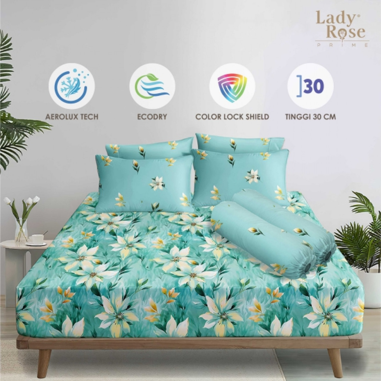 • Tinggi Sprei Cukup untuk Tinggi kasur 20-30Cm