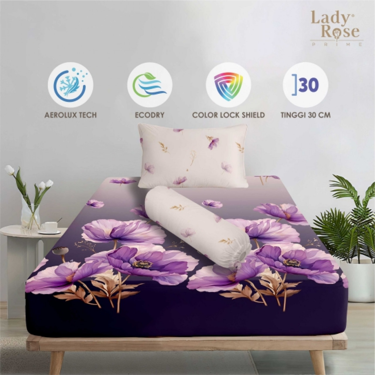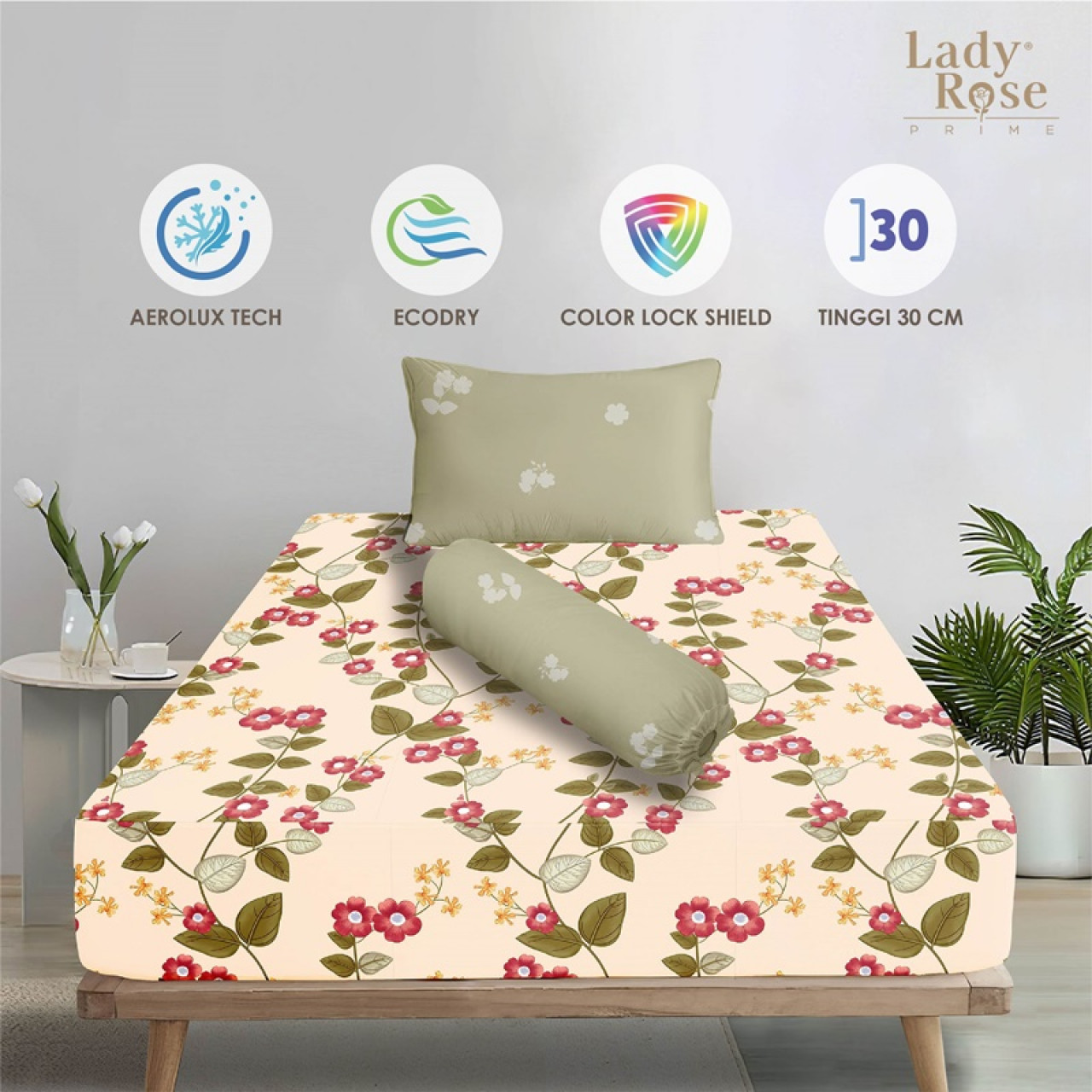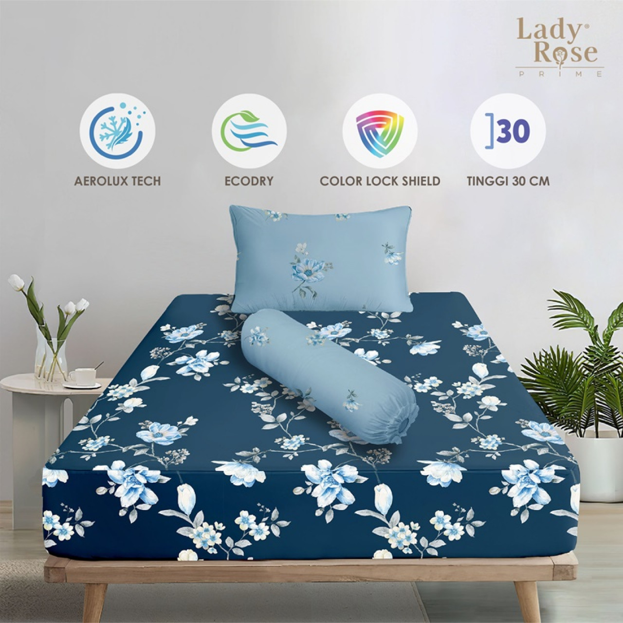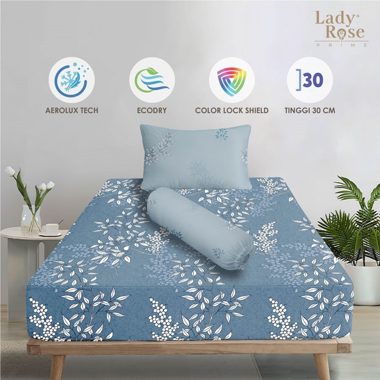 • Tinggi Sprei Cukup untuk Tinggi kasur 20-30Cm
