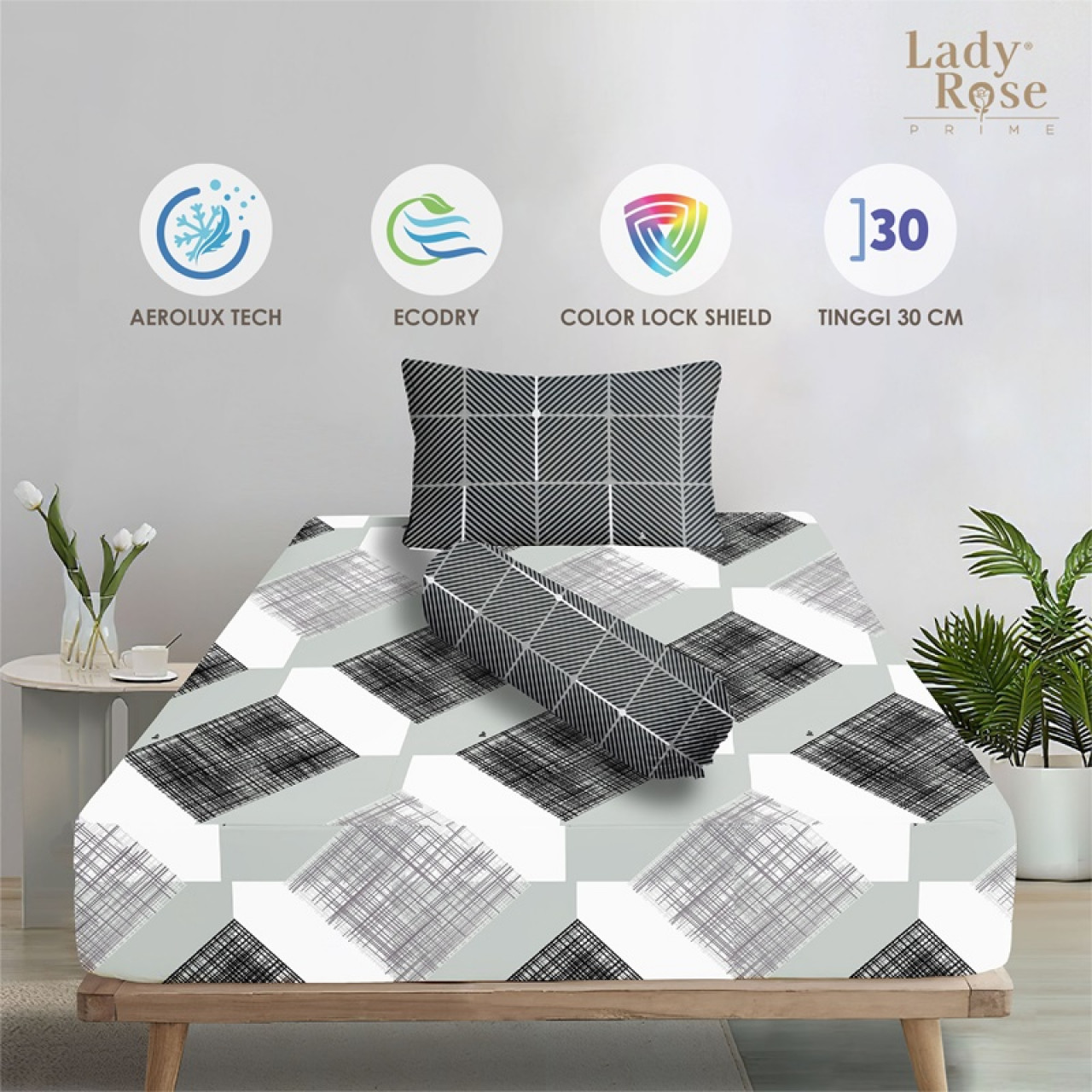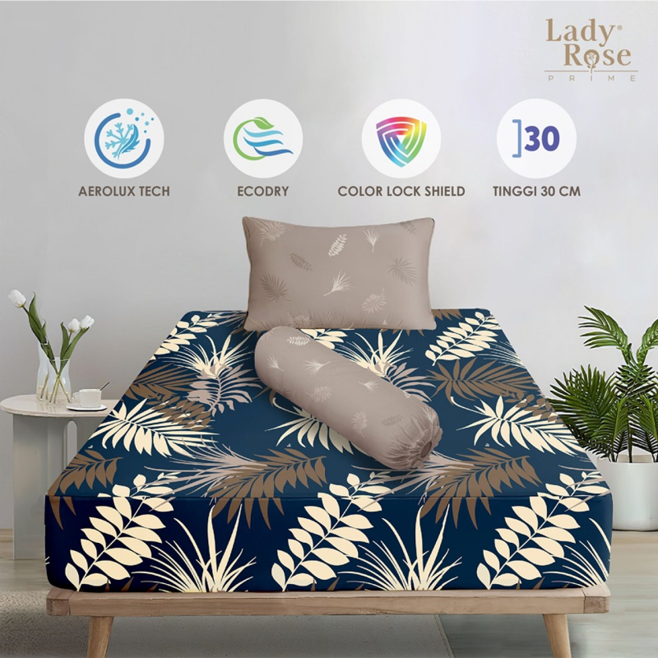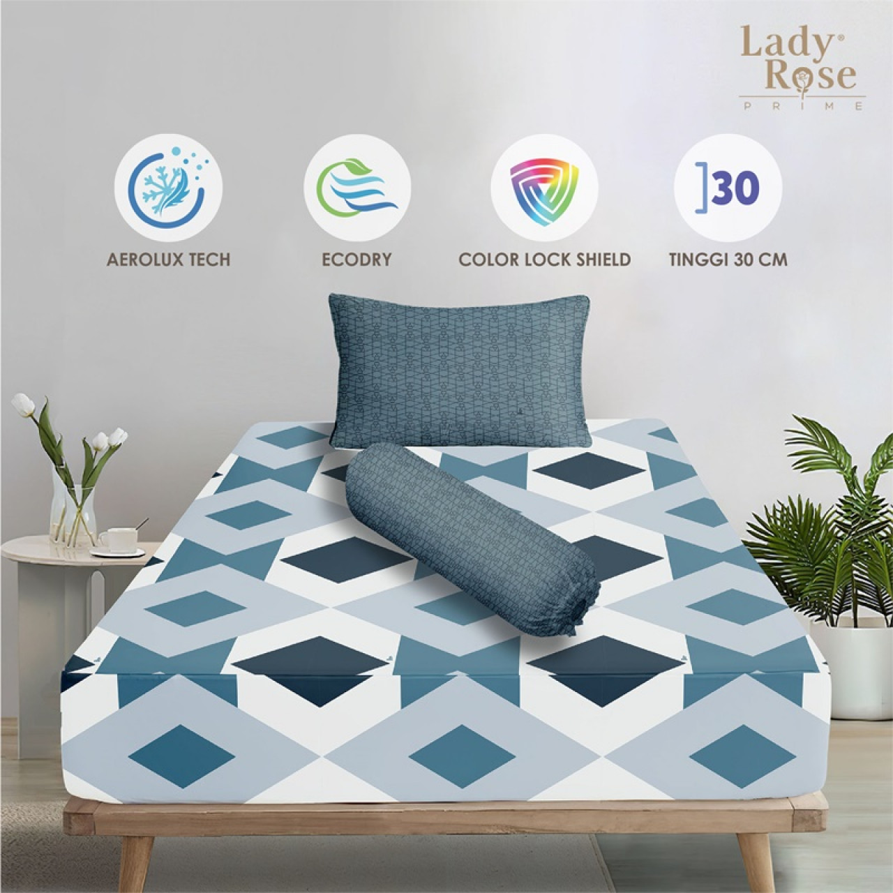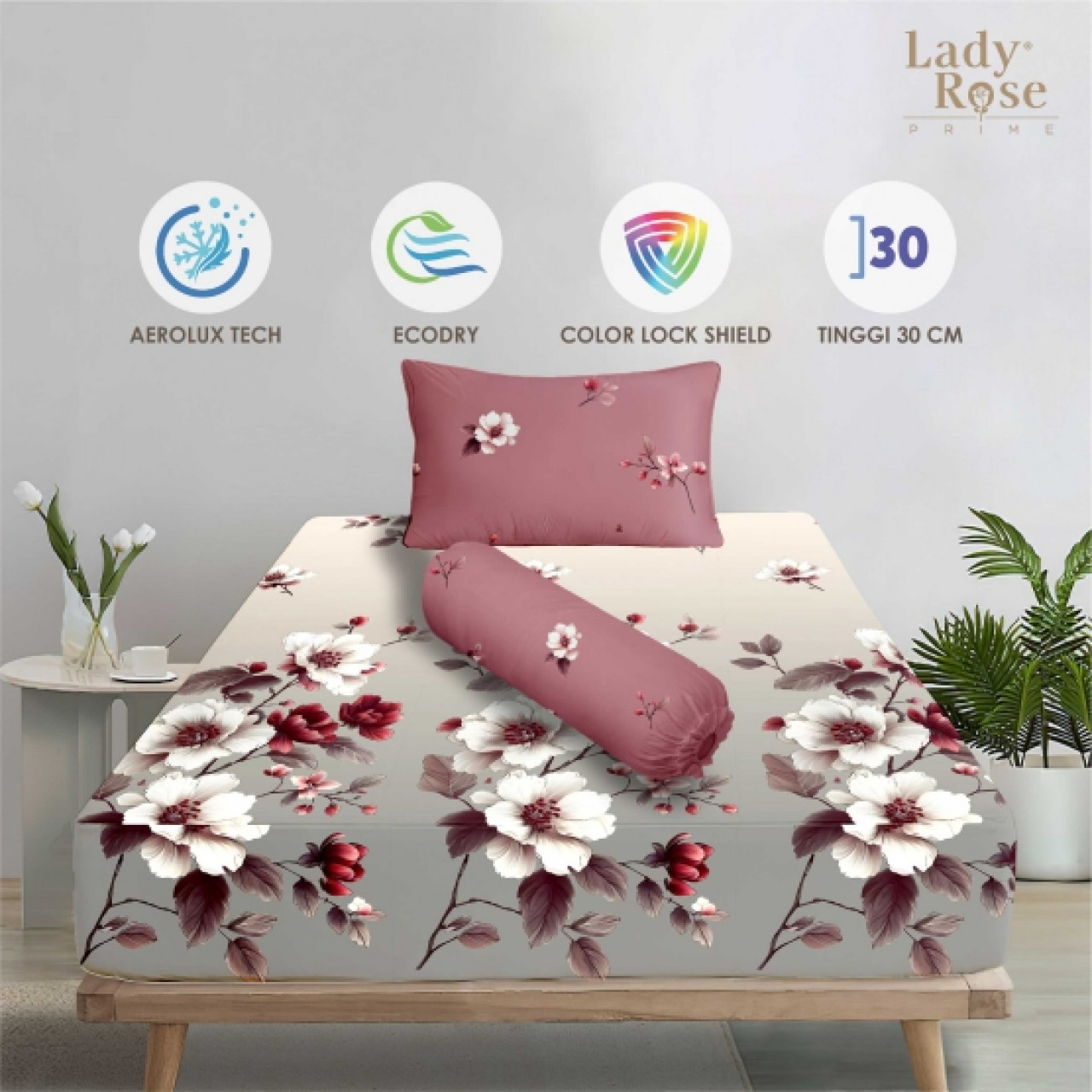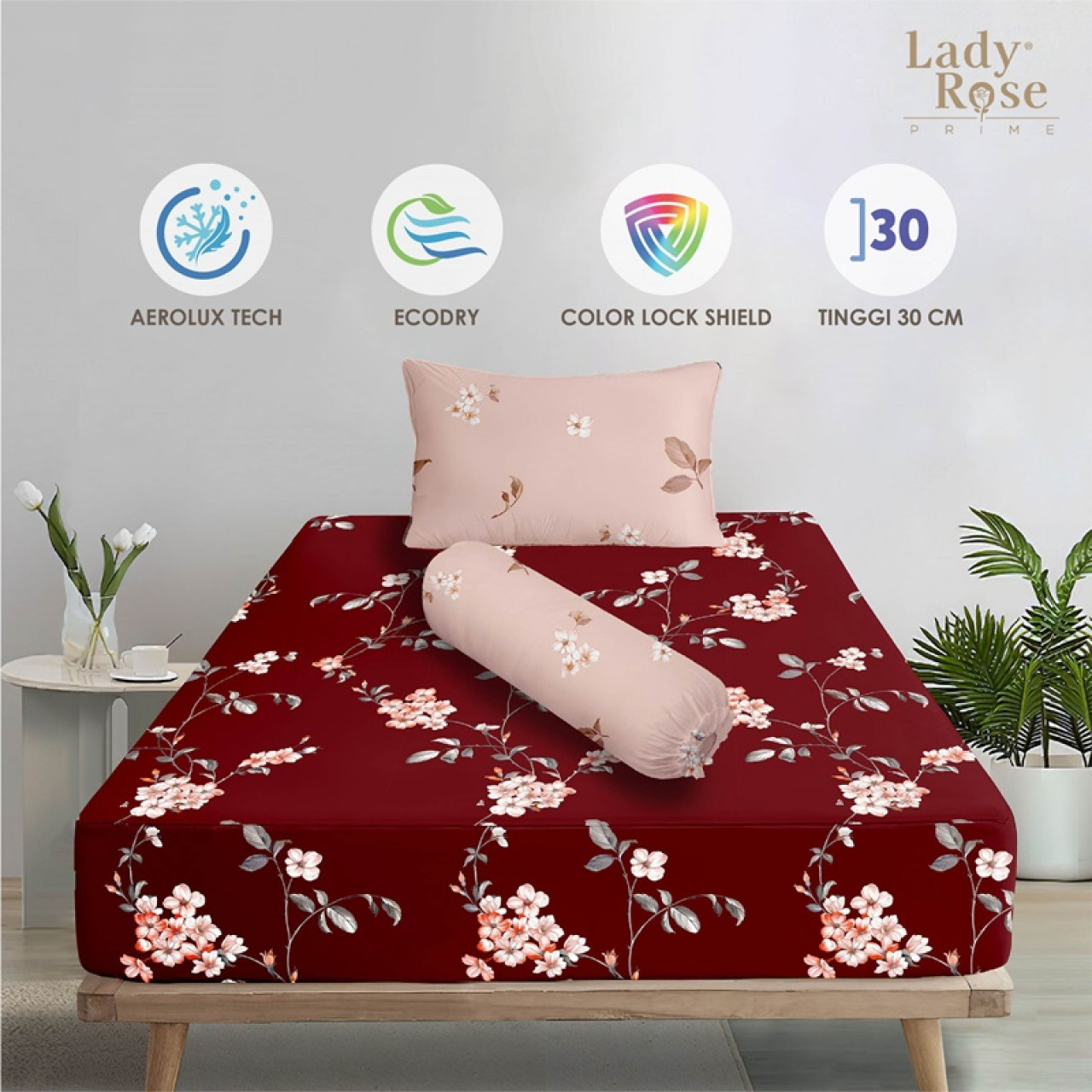 • Tinggi Sprei Cukup untuk Tinggi kasur 20-30Cm