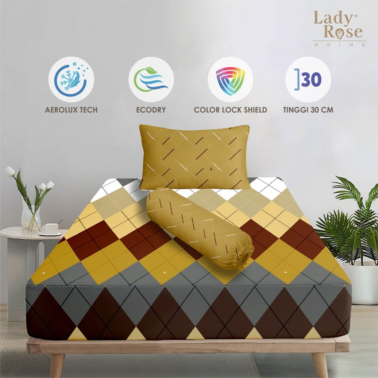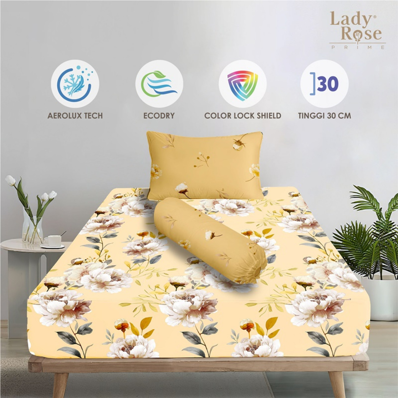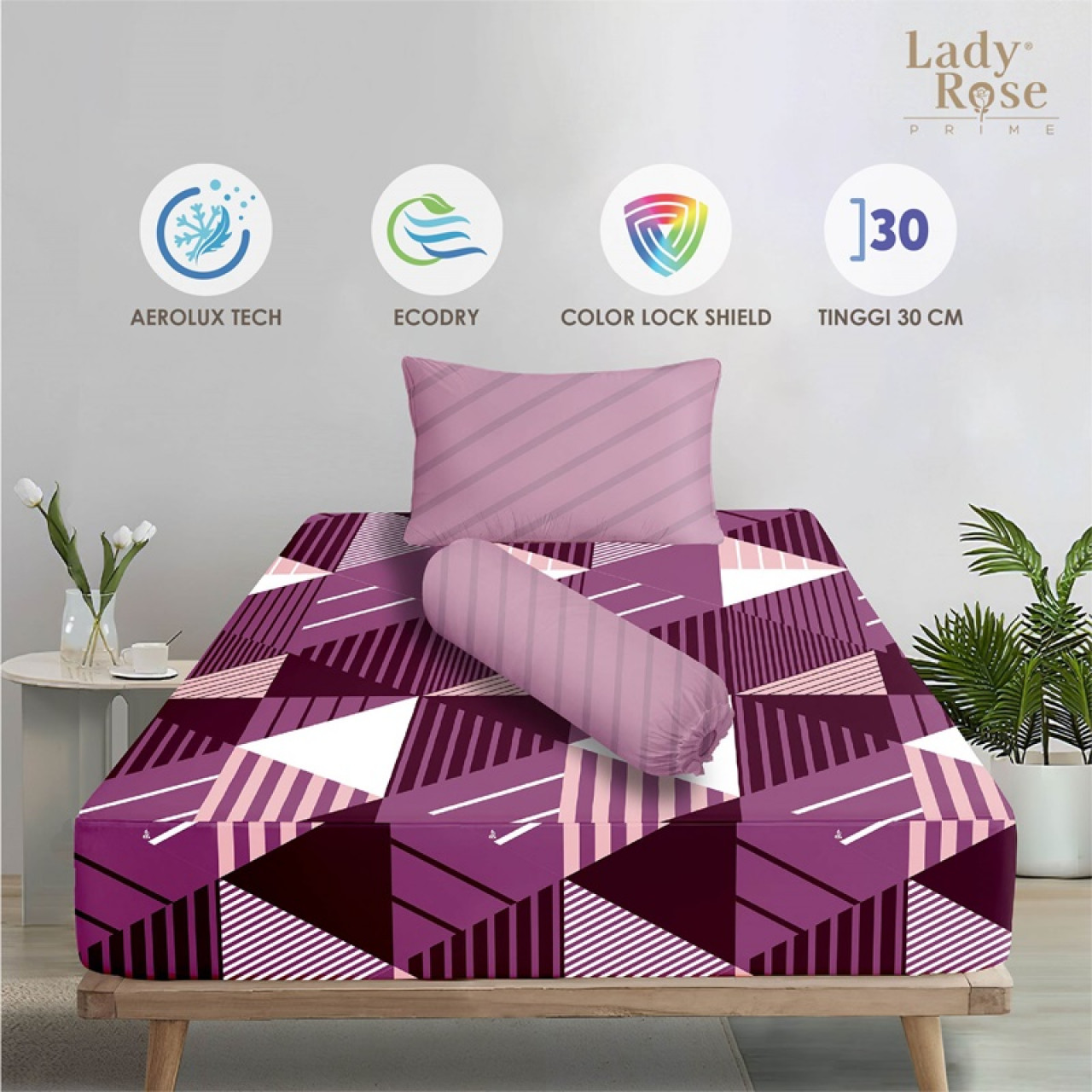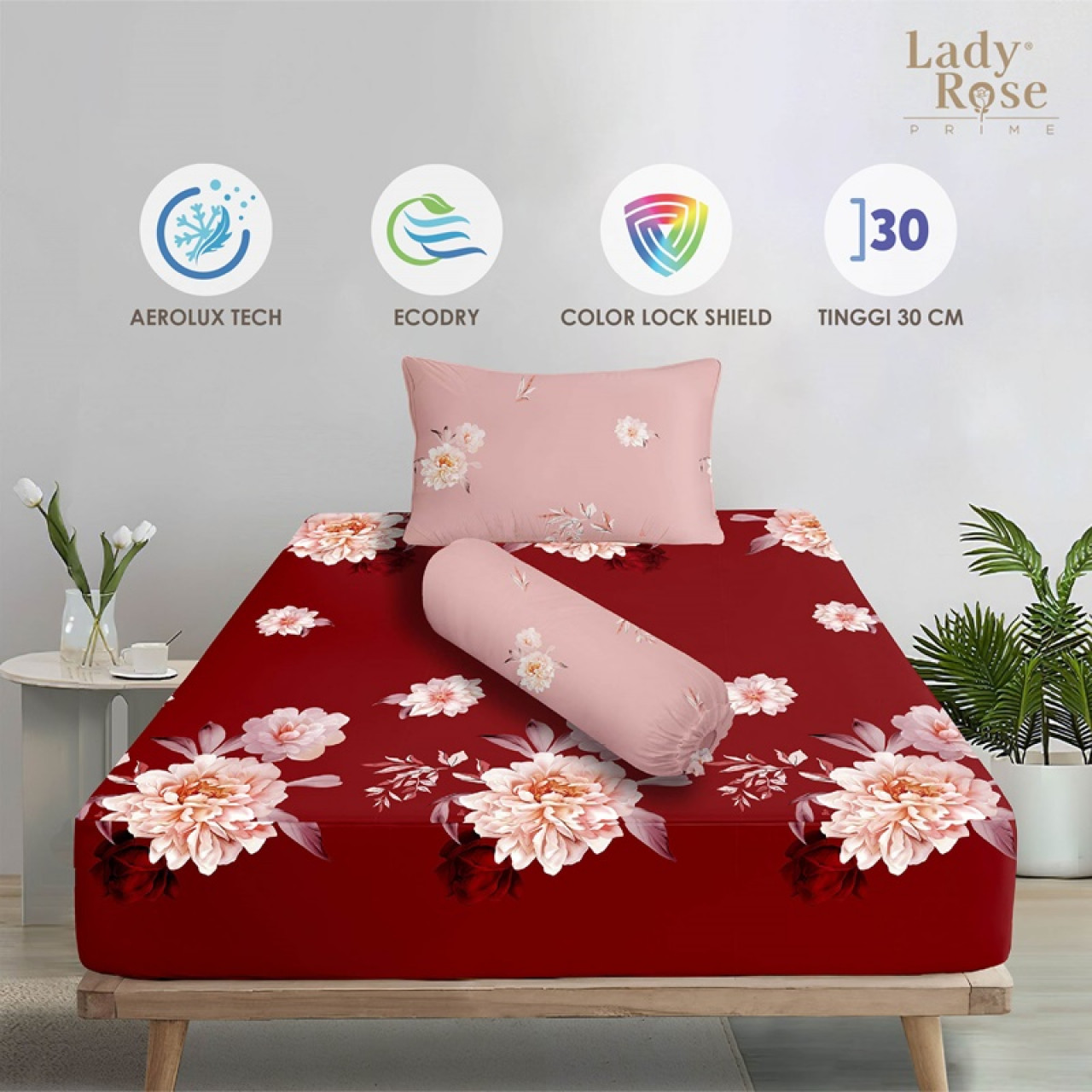• Tinggi Sprei Cukup untuk Tinggi kasur 20-30Cm